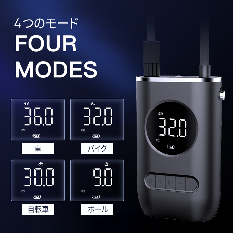 サイクリング、ツーリングの味方!持ち運び楽々、空気圧センサー内蔵 自動空気入れGeePump