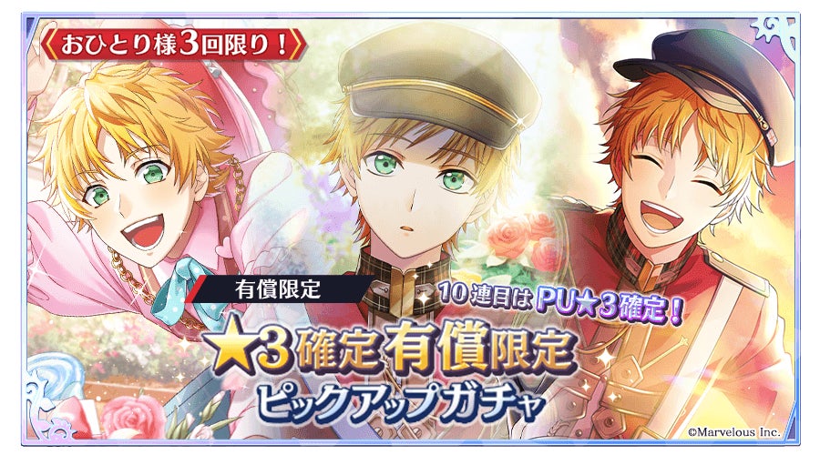 夏休みスペシャルキャンペーン第三弾として、過去に登場した期間限定のカードも含む、★3確定有償限定ピックアップガチャを開催いたします!今回のガチャではジョージ(CV:八代拓)をピックアップ!期間限定、おひとり様3回限りの限定ガチャで、10連目では必ずジョージの★3カードのいずれかが排出されます。期間限定カードの★3「【Happyのおすそ分け】ジョージ」が手に入るかもしれないこの機会をどうぞお見逃しなく!