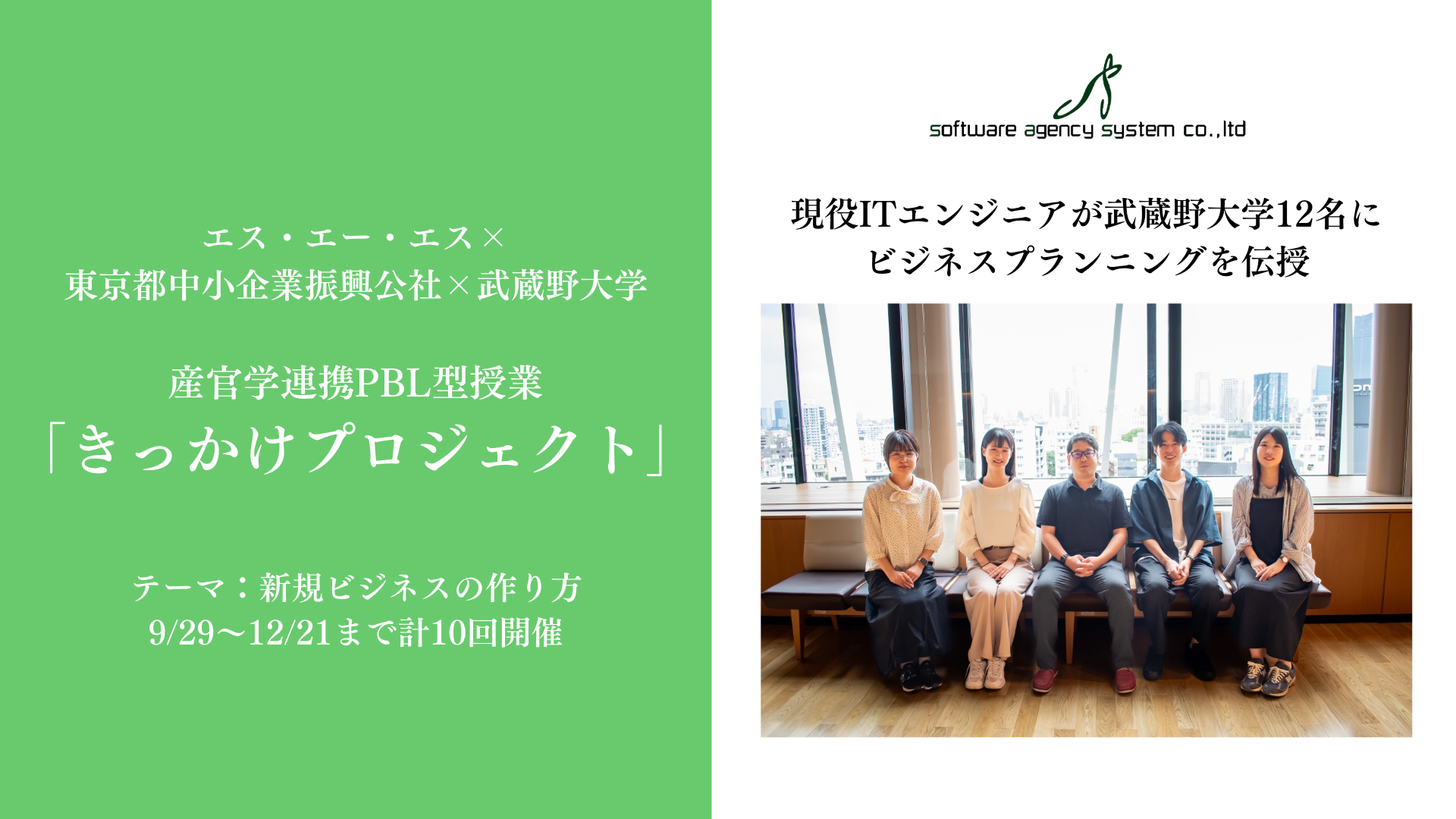 様々な企業の実際の課題に取り組むPBL=問題/課題解決型学習を通じ、ビジネスの実践的な知識・スキルを養うことを目的として、今年度は武蔵野大学経営学部経営学科に所属する3年生計12名に向けて全10回の講義を行います。SASはIT企業であるため、カリキュラム設計も講義を行う講師もほとんどがITエンジニア。中には新卒2年目の社員も含まれます。