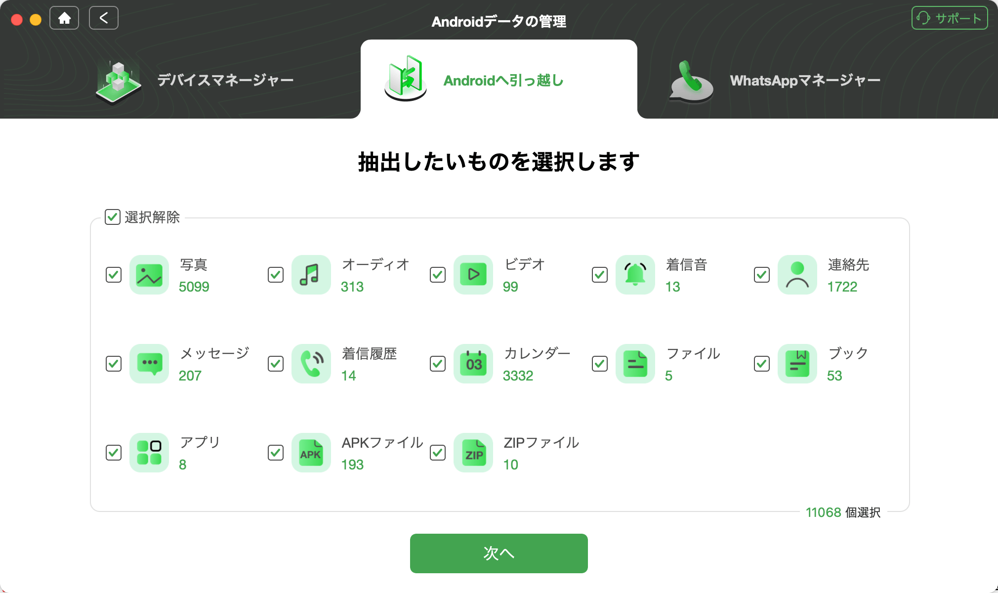 Step 4: 転送するデータの種類を選択し、「次へ」をクリックします。