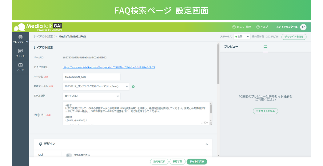 1.AI-FAQ(β版):登録したナレッジデータを検索ページ型UIで公開することが可能に!