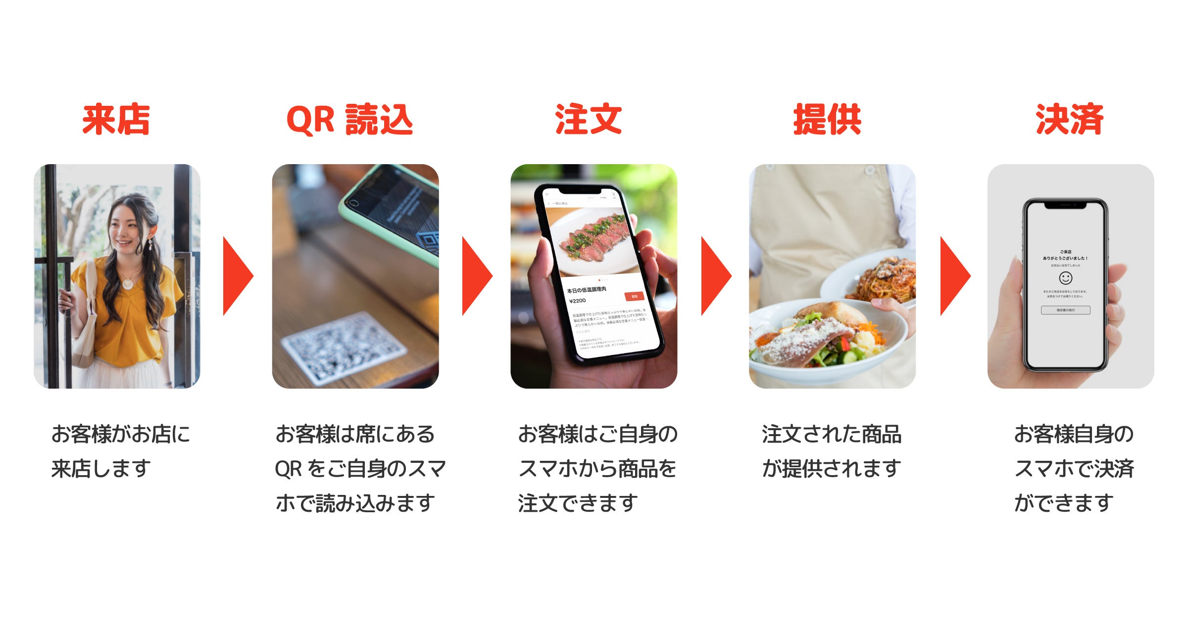 ・都度カウンター注文に行く手間なく自席でご自身のスマートフォンにて、全店舗メニューを横断的に注文から決済までできる