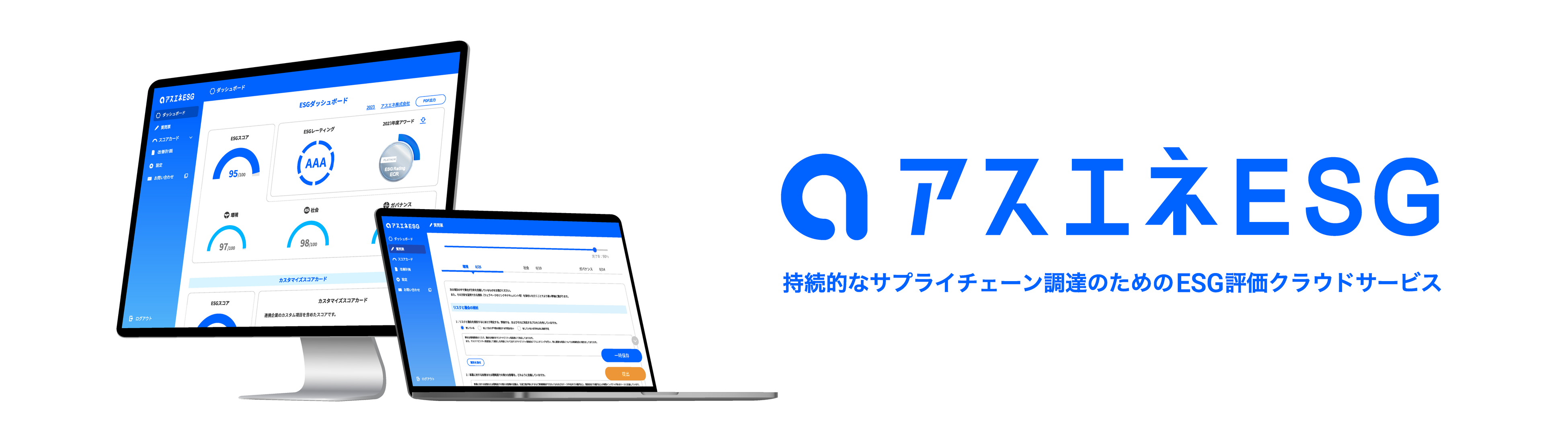 「アスエネESG」は、企業のサプライチェーンのESG(E:環境、S:社会、G:ガバナンス)経営の取り組みを可視化できるESG評価プラットフォームです。