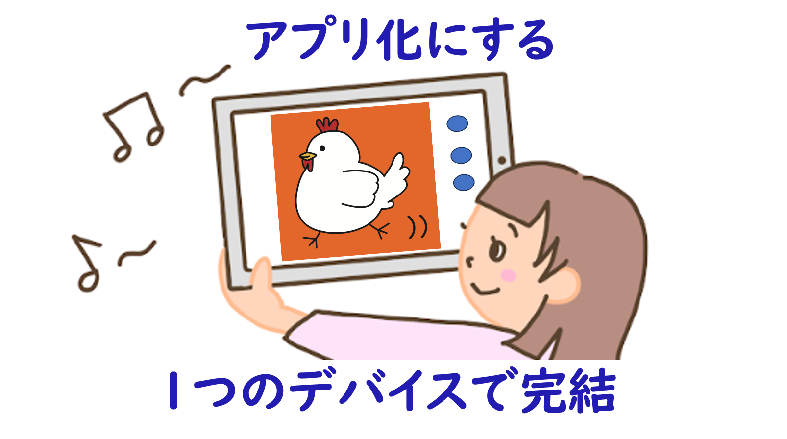 「従来の学習方法では対応できなかった児童・生徒」に対して、ある程度の効果を得た「みるみるカード」ですが、カードを紙で作成しているため、音声や・動画のコンテンツを組み合わせて学習するには、カードに加えてコンピューターやモニターが必要になり、単体で完結する教材ではありませんでした。