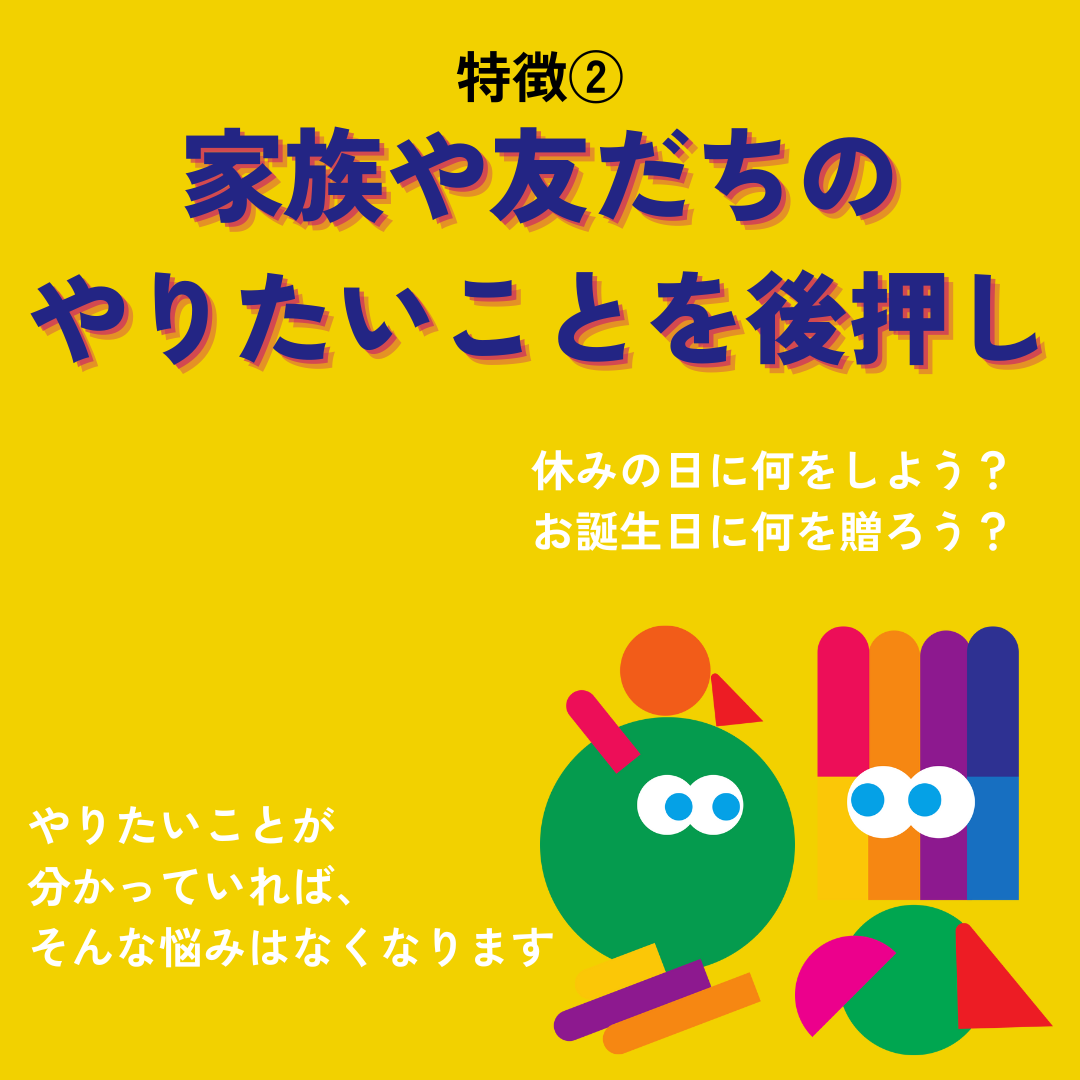 休みの日に何をしよう?お誕生日に何を贈ろう?やりたいことが分かっていれば、そんな悩みはなくなります