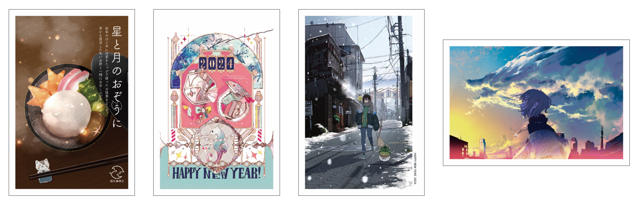 「クリエイターコラボ年賀状」を購入した顧客は、特典として年賀状用に描き下ろした作品をトレーディングカードとして受け取ることができます。 お気に入りの作品を、年賀状を贈ったあとでも手元に残すことができます。