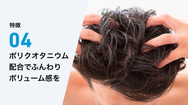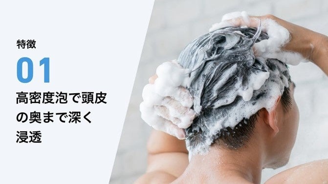 高密着泡が頭皮の汚れをていねいに洗いあげ、すこやかな髪や頭皮を保つために必要な成分を浸透させることで、髪にハリやコシを与え、ふんわりボリューム感を出します。