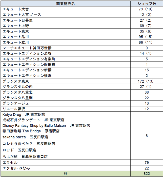 ※ショップ数欄内の括弧内の数字は期間限定ショップの数