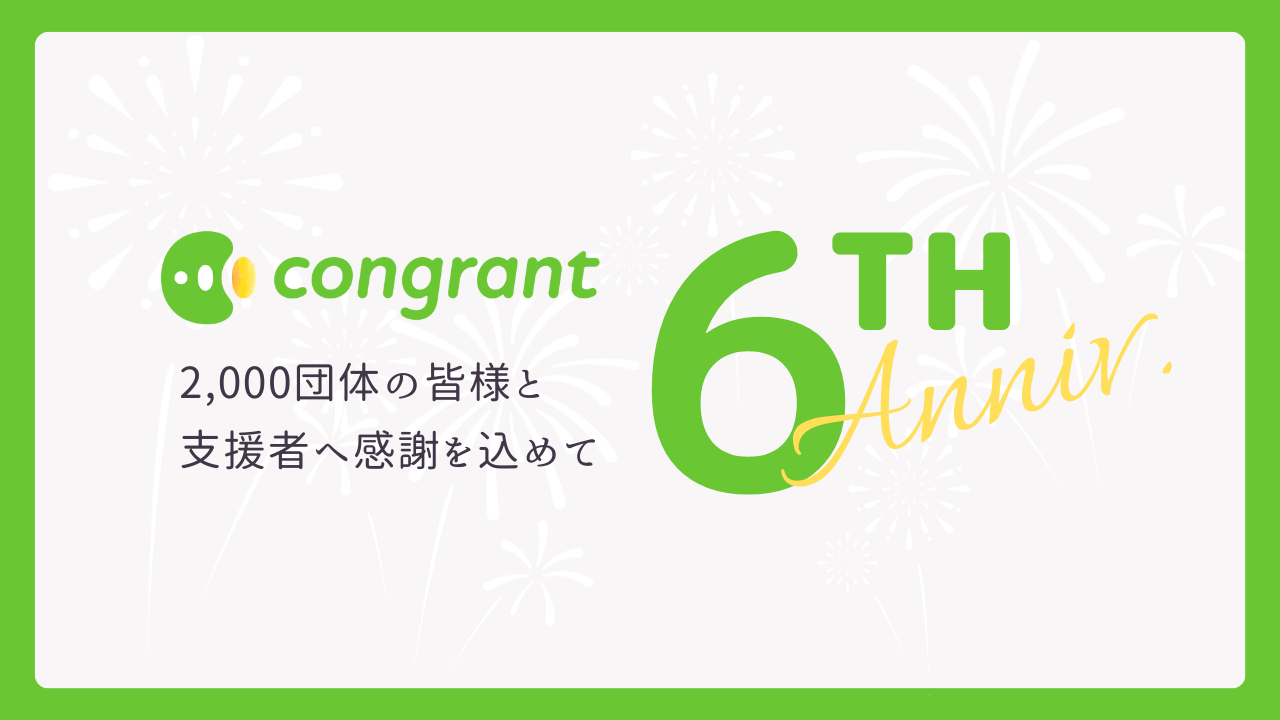 コングラントは、NPO向けの決済サービスとして2017年9月にサービスを開始し、2023年9月1日で6周年を迎えました。寄付流通額は50億円を突破し、利用団体数は1年前の1,340団体から1.5倍増加して2,000団体に達しました。