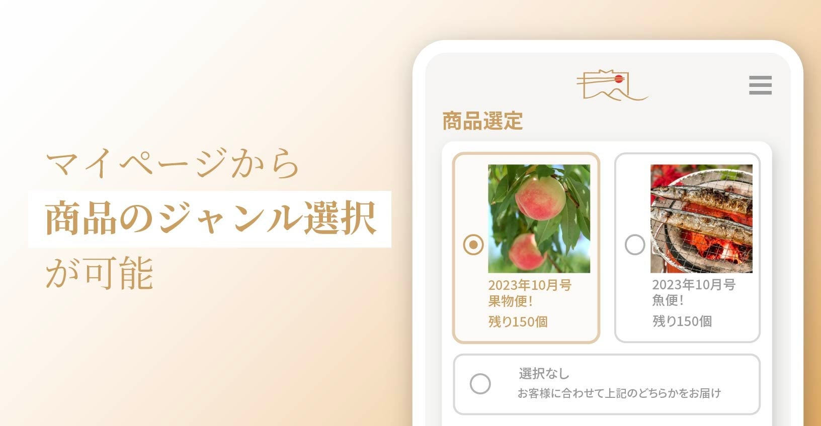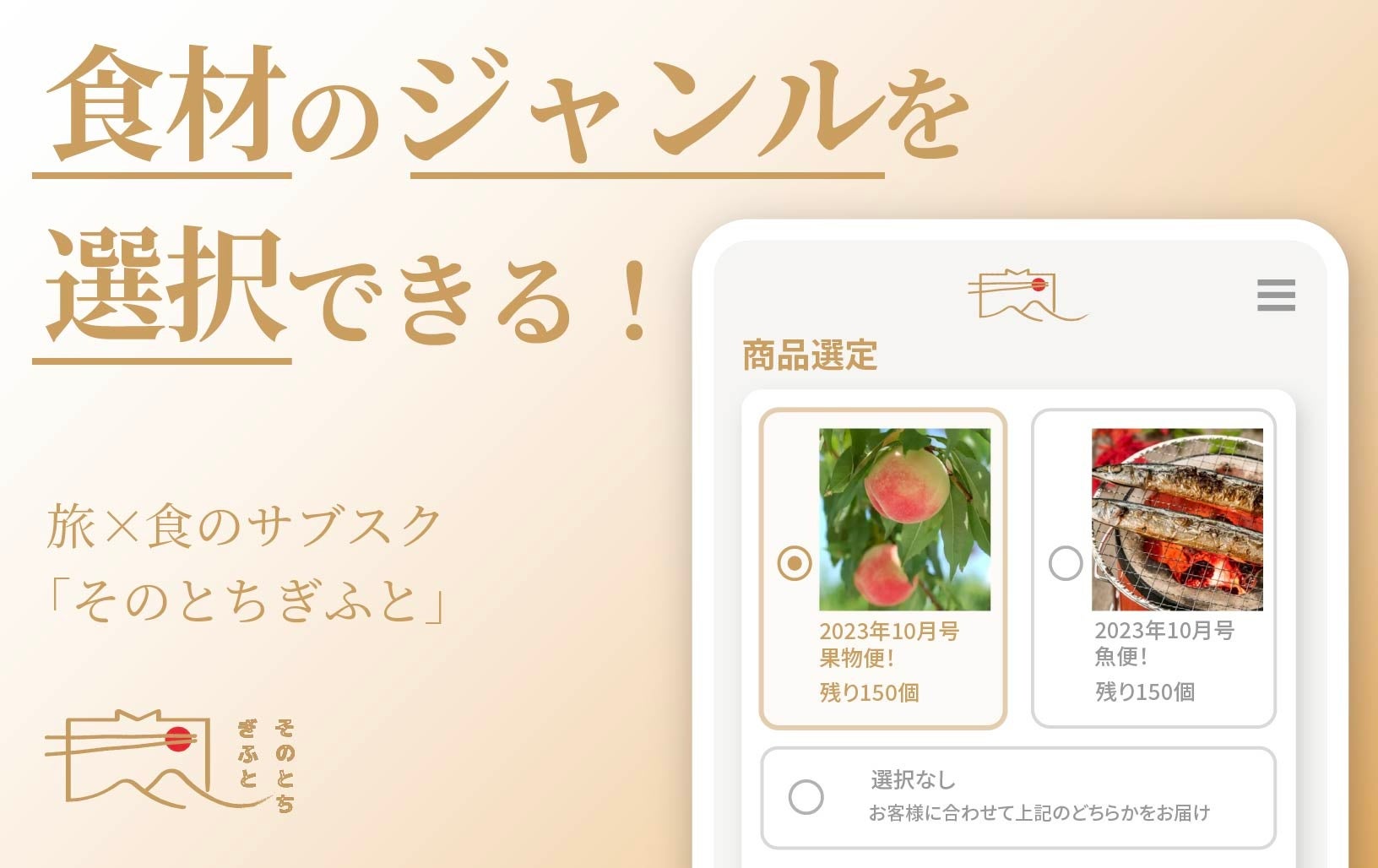 「そのとちぎふと」で毎月届く食材について、『いろんな種類の食べ物から選べるともっとワクワクする』というユーザーの声を反映し、食材のジャンルをユーザー自身で選択できるようになりました。10月のお届けより、サービスのユーザーは、毎月1日に届く受取指定日の選択メールにて、受取指定日と、届く食材のジャンルを2つから選べるようになります。