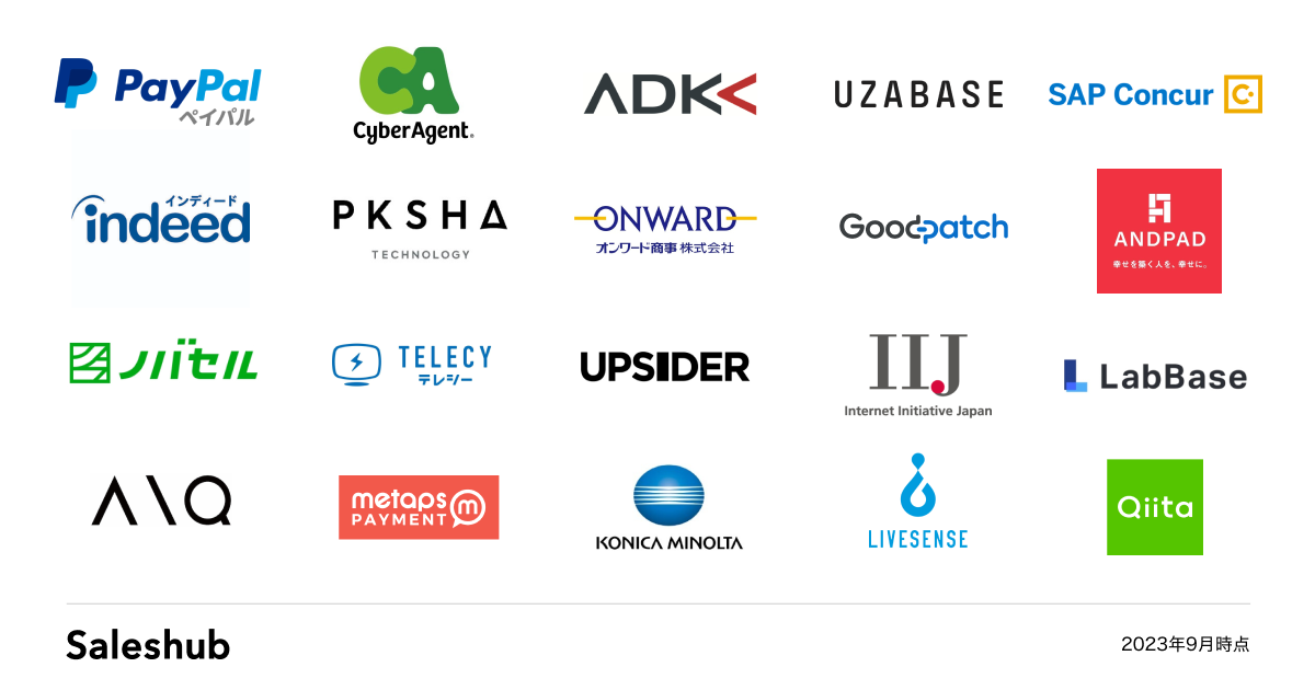 Saleshubは国内の急成長スタートアップから大手上場企業まで、国外の幅広い業界で新規開拓営業の新たな手法のひとつとして選ばれています。