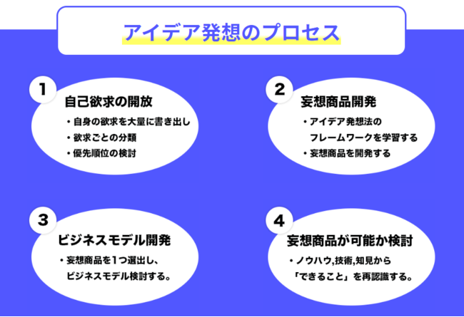 「自社で開発可能な技術」から?「売れる」から?アイデア発 想の方法では、このように考えるのが一般的ですが、この方法だと思考が固まり、アイデアが出なくなってしまう原因に …。モウトレでは、4つのアイデア発想のプロセスを学ぶことで、柔軟にアイデア発想ができるようになります。商品開発に限らず、会議など自身の「考え」が必要なビジネスの場で活かすことが出来ます。