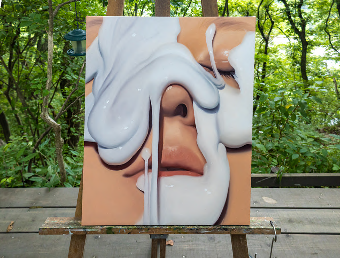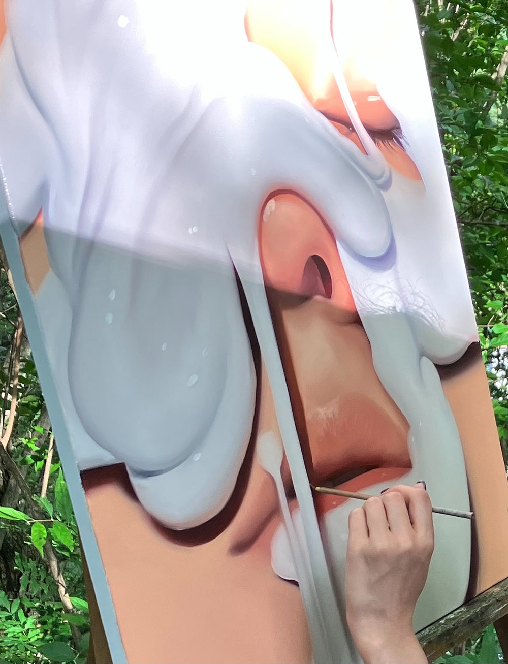 1999年、フランス·ボルドー生まれ。スライム状の物質と有機的なモチーフが絡み合う独特な人物画を描く。シンプルな構成ながら、物質の質感や透け感、柔らかさのリアルな表現が観る者に強い印象を与える。