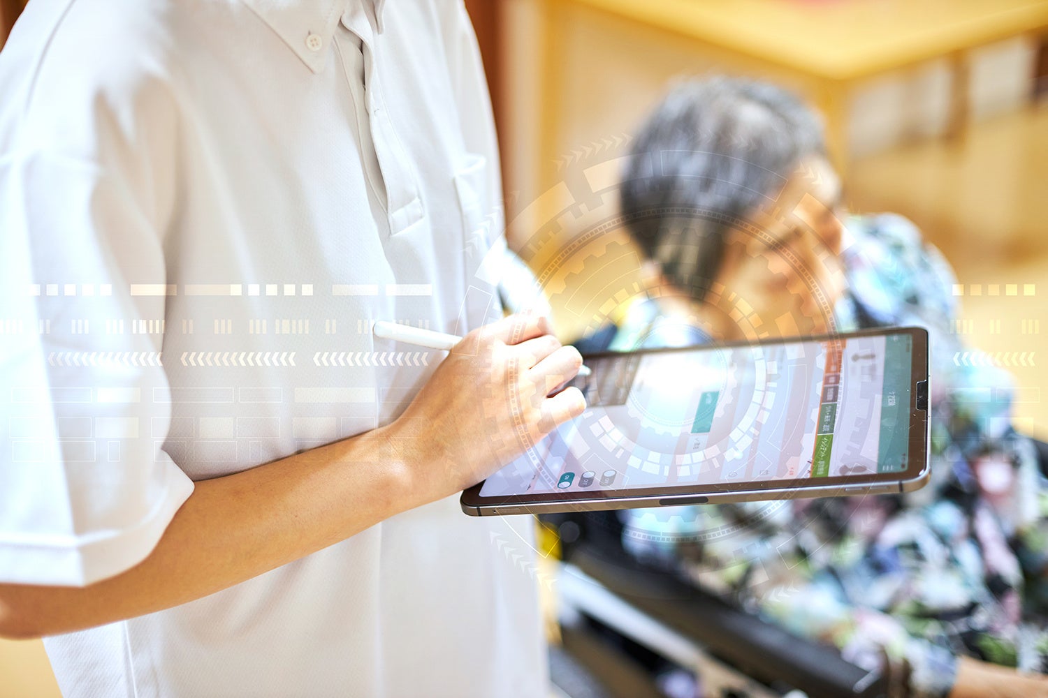 記録した情報は今後、個人情報を持たない介護プロセスにおける統計情報として[荒関1] 、AIを使ったケアプランを自動生成のための貴重な情報として役立てられます。「CareViewer」と連動するAIは、基礎研究を終え、プロトタイプが完成。さらなる高度化を目指します。AIに学習させながら、精度を向上させ、質の高い介護を提供し生産性を向上させていきます。