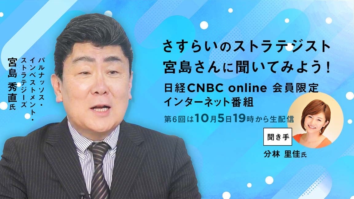 10⽉5⽇(木)は19時から⽇経CNBC onlineの会員に向けて、9月29日(金)放送の「昼エクスプレス『さすらいのストラテジスト 宮島が斬る!』」【世界投資家152社訪問 欧米中国株売りで日本株は“漁夫の利”】では語り切れなかったことをじっくり解説するほか、みなさんから寄せられた質問に時間が許す限りお答えします。