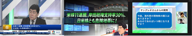 ・海外勢の動向から宮島さんご自身に関することまで、様々な質問にお答えいただく日経CNBCのインターネット限定番組です。(下の画像は7/27配信の第4回のものです)
