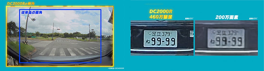 従来の広画角カメラの弱点であるナンバー認識性能を向上、他にも安心機能を多く搭載