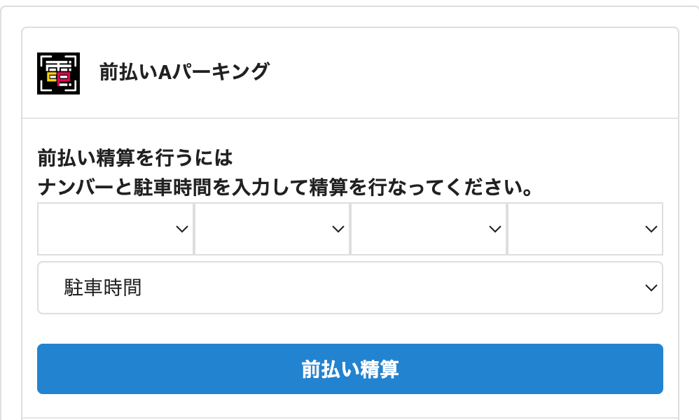 利用者が駐車する場合、自分の車のナンバー(4桁数字)と駐車時間(24時間など)を入力し前払い精算を完了させます。その後、入力した駐車時間内の任意のタイミングで出庫します。