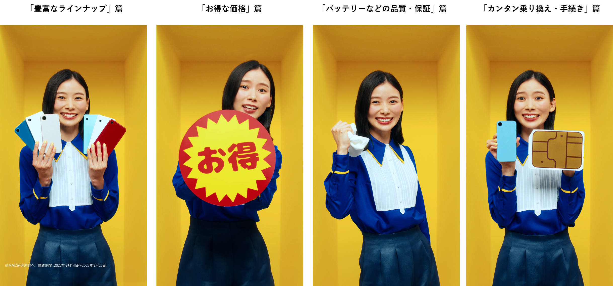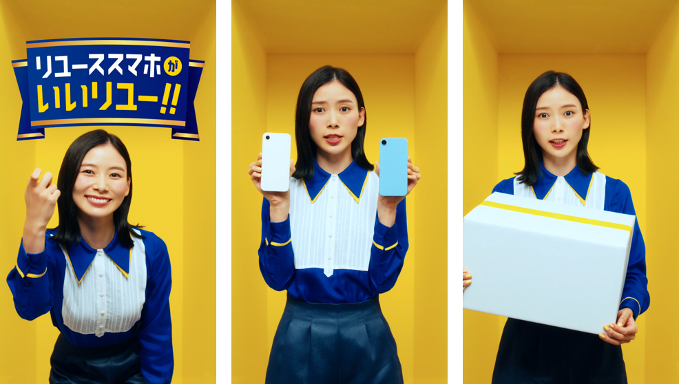 A:みなさん、こんにちは。朝日奈央です。今回も、とっても楽しいCMに仕上がったと思います。多くの方に見ていただいて、リユーススマホという選択肢も検討していただけたらと思います。頑張って声を張って、楽しく元気に撮影したので、ぜひ見てください!
