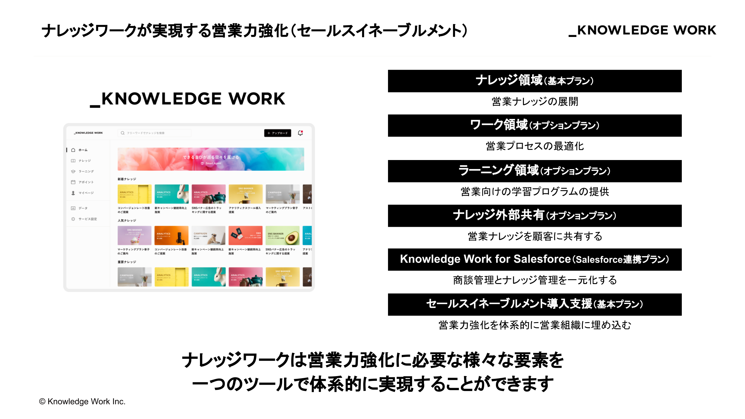 「ナレッジワーク」の概要:営業力強化や営業生産性向上を1つのツールで実現