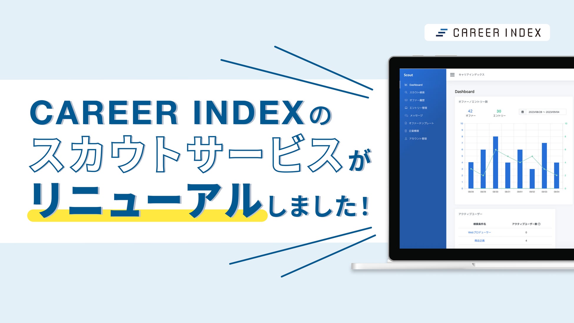 この度、株式会社キャリアインデックス(本社:東京都港区、 代表取締役社長CEO:板倉 広高)は、当社が運営する転職サイト「CAREER INDEX(キャリアインデックス)」におけるスカウトサービス「CAREER INDEXスカウト」をリニューアルしました。