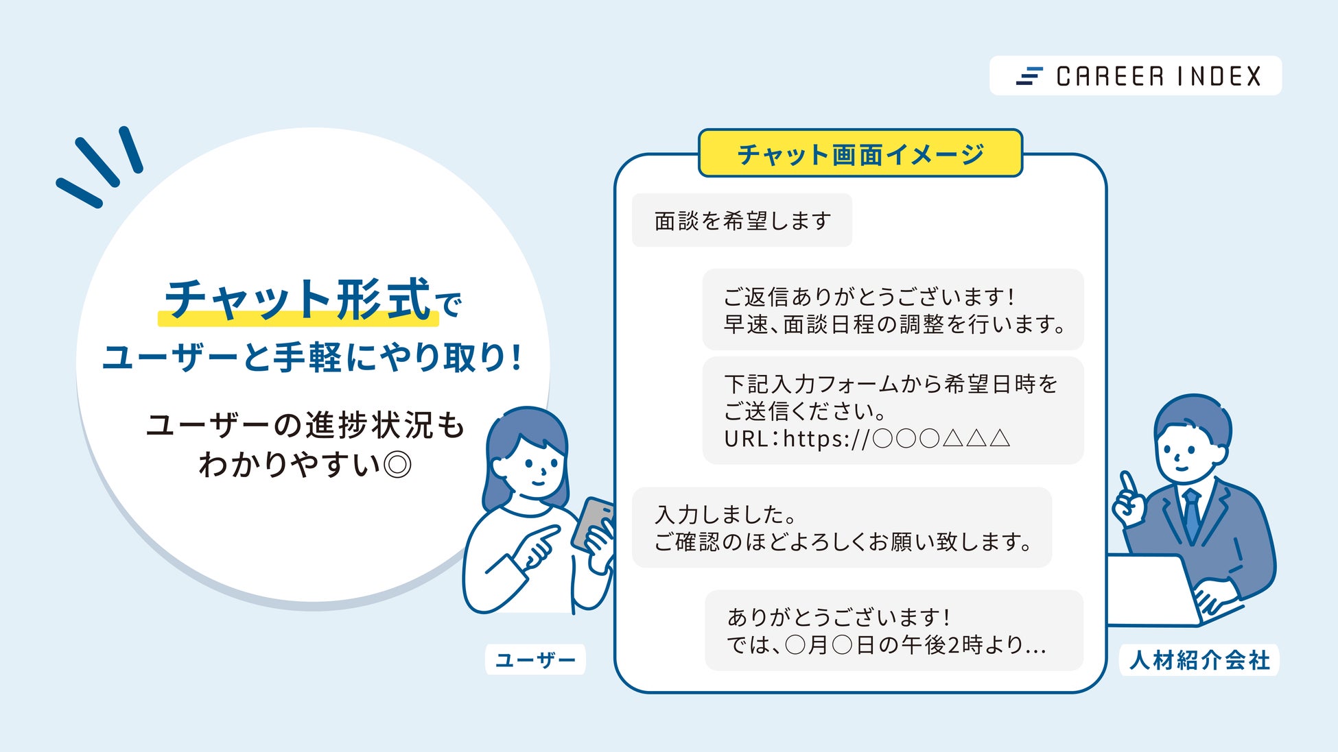 また、ユーザー/利用企業双方のUXを改善するため「メッセージ機能」を追加しました。「メッセージ機能」はオファー承諾後、チャット形式でメッセージのやり取りができる機能です。ユーザー/利用企業間の連絡が円滑にできるため、オファー承諾後の面談・面接設定率の向上に寄与します。
