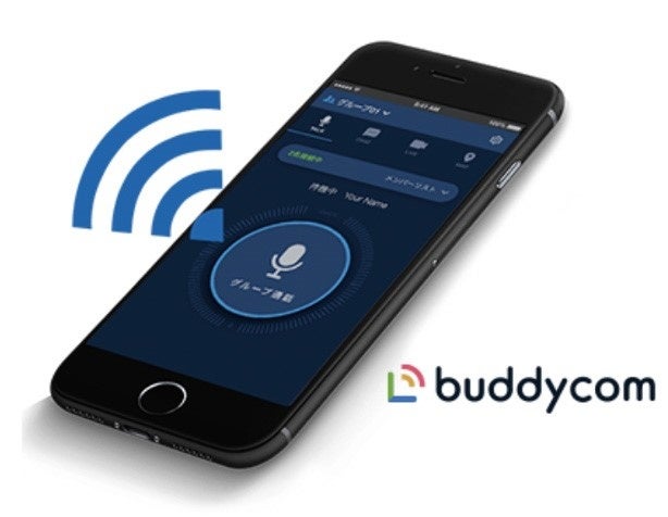 デスクレスワーカーをつなげるライブコミュニケーションプラットフォーム「Buddycom」は、インターネット通信網(4G、5G、Wi-Fi)を利用して、スマートフォンやタブレットにアプリをインストールすることで、トランシーバーや無線機のように複数人と同時コミュニケーションを可能にするサービスです。音声、テキストチャット、動画、位置情報(IoT)に加え、AIを利用したデジタルアシスタントでのコミュニケーションが可能です。