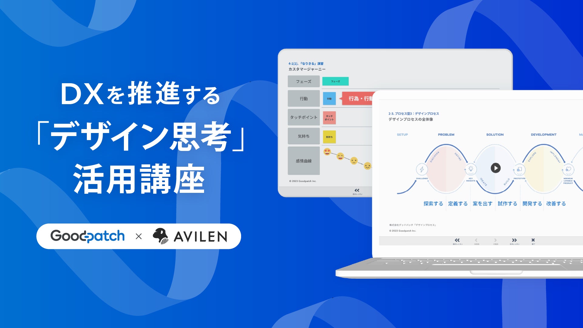 今回、グッドパッチが提供してきたワークショップを通じた知見とAVILENのDX人材育成に向けたオンライン学習プラットフォームを活用した講座を開発・提供することで、全国各地の企業は従業員に対して低コストで受講機会をもたらすことができます。企業の事業変革に必要な思考方法を、組織全体で身につけることで、事業変革を加速することが可能になります。
