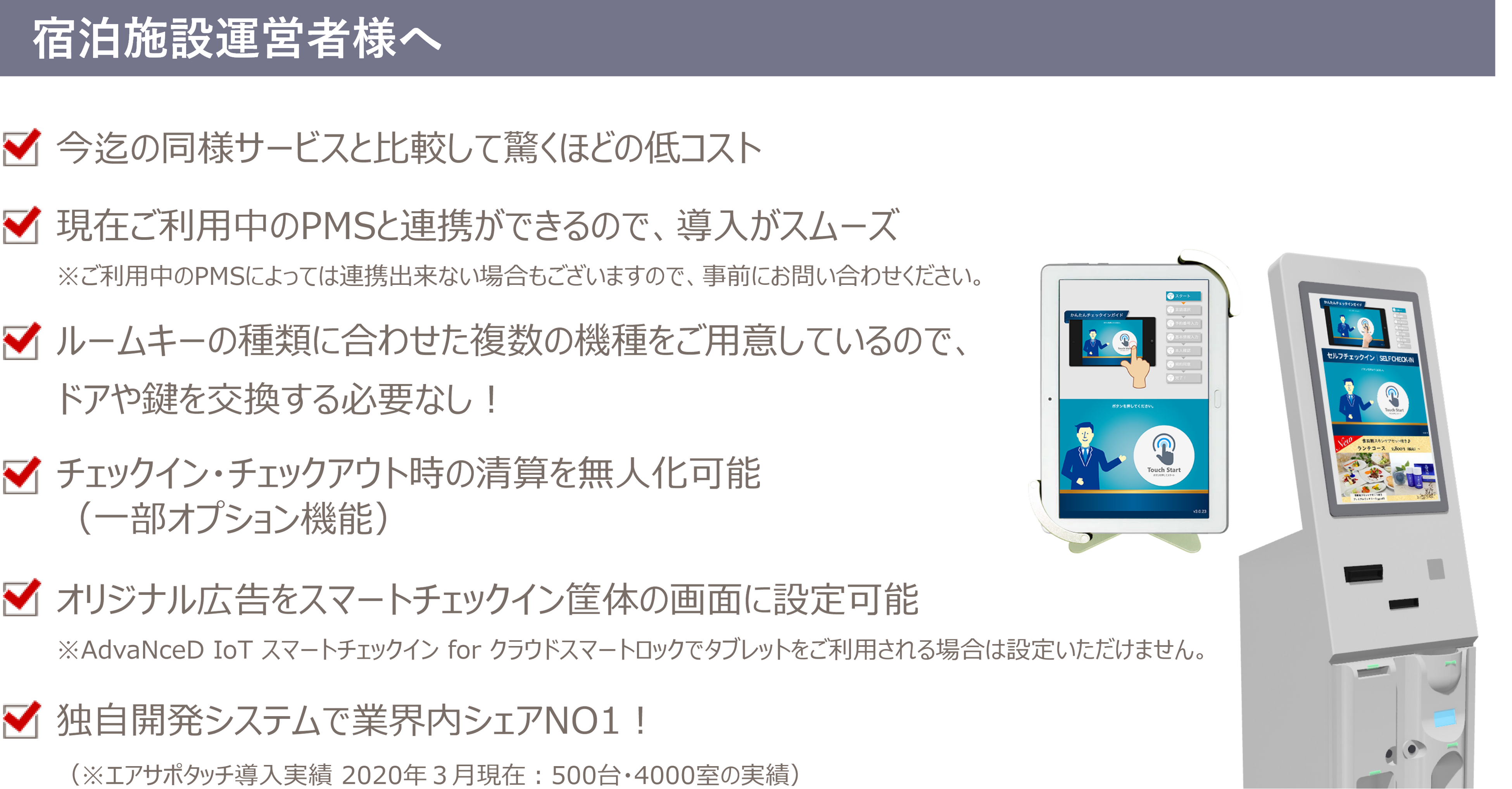 「AdvaNceD IoT スマートチェックインシリーズ」の特徴