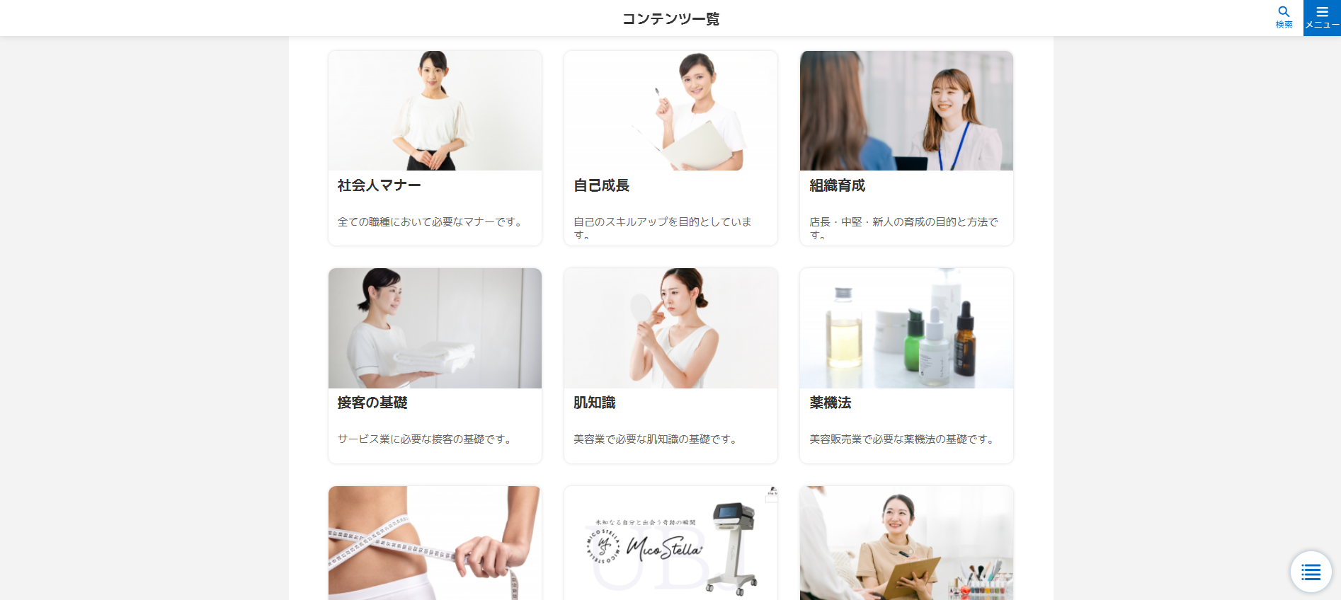 1サロンにつき10IDまでいつでも学習することができ、スピーディーなスキル習得が期待できます。スタッフ一人一人の学習進捗を管理し、的確なフィードバックが可能な為、OJTを効率化します。また、美容サロン向け機器や商材を取り扱うメーカーの加盟も可能なため、メーカーの自社商品に関するサロンスタッフの理解度向上や、商品PRとしてもご利用いただけます。