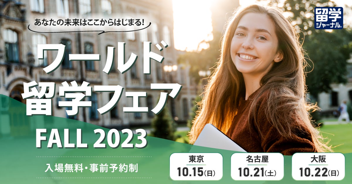2023年10月15 日 (日)に東京ベルサール渋谷ファーストにて、株式会社 留学ジャーナルが主催する「ワールド留学フェアFALL2023」に協賛企業として出展いたします。