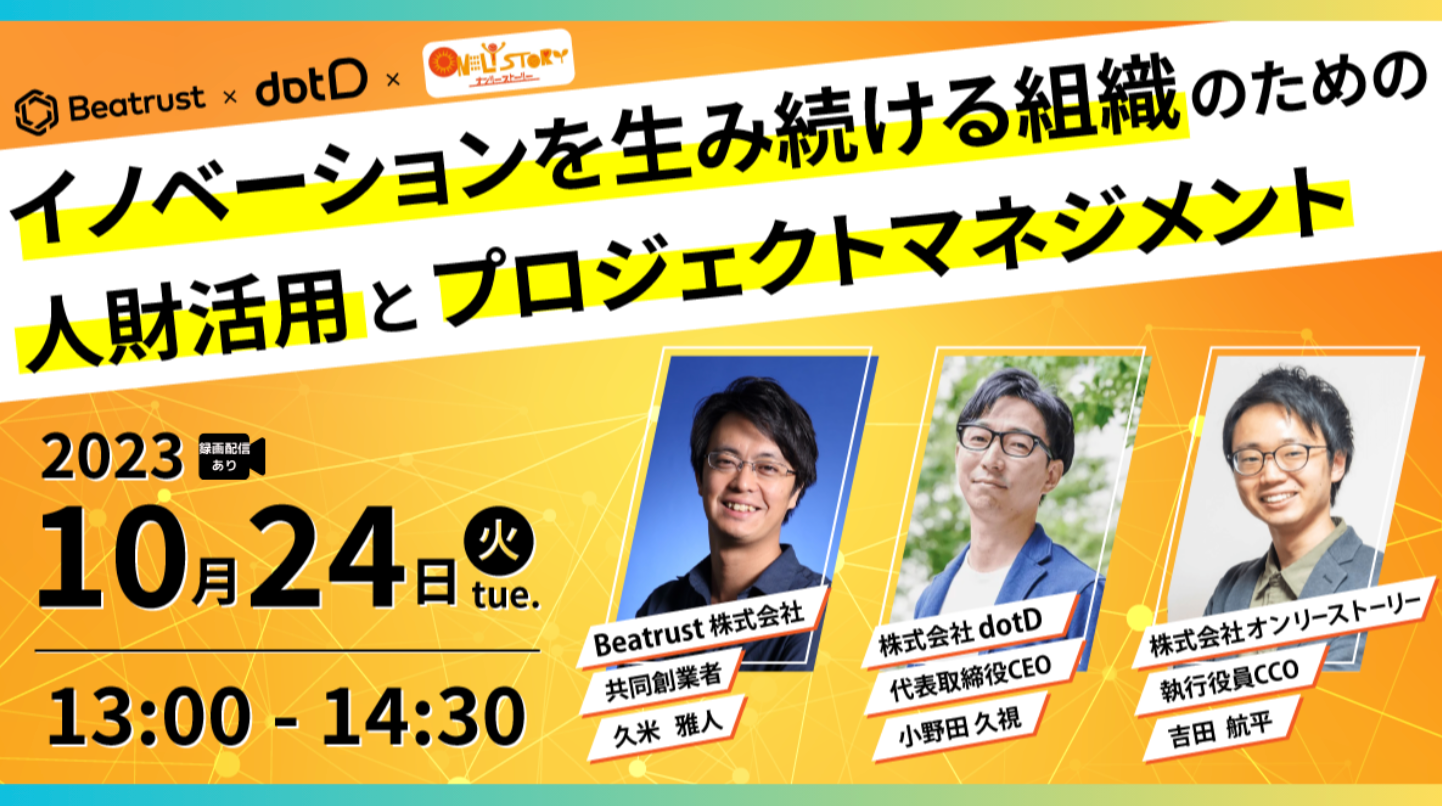 今回、株式会社dotD、株式会社オンリーストーリー、ビートラスト株式会社の 3 社が共催するオンラインセミナーとして各社の最新事例を紹介いたします。