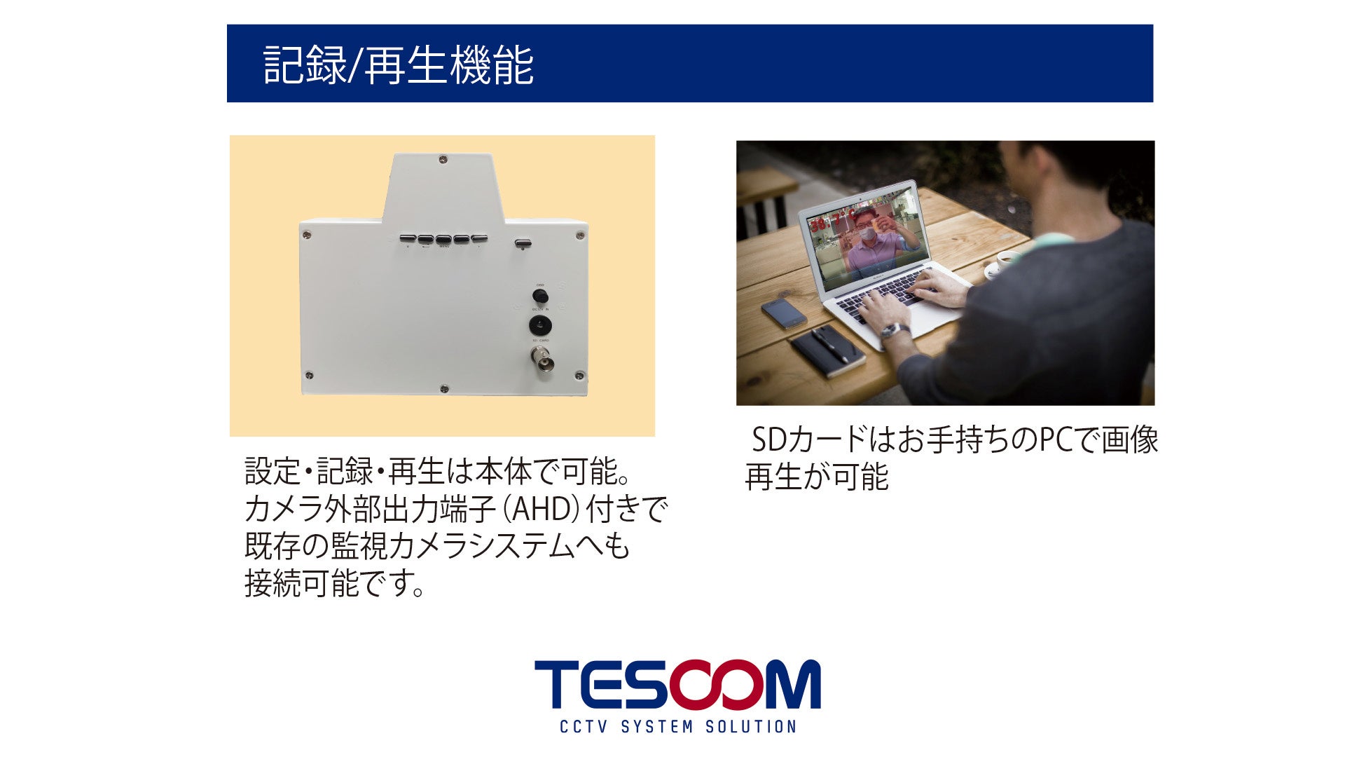 ● SDカード(別売)挿入により映像記録が可能(32GB ~256GBまで対応)