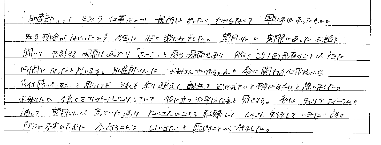 助産師 望月里恵さんの話を聞いた生徒の感想
