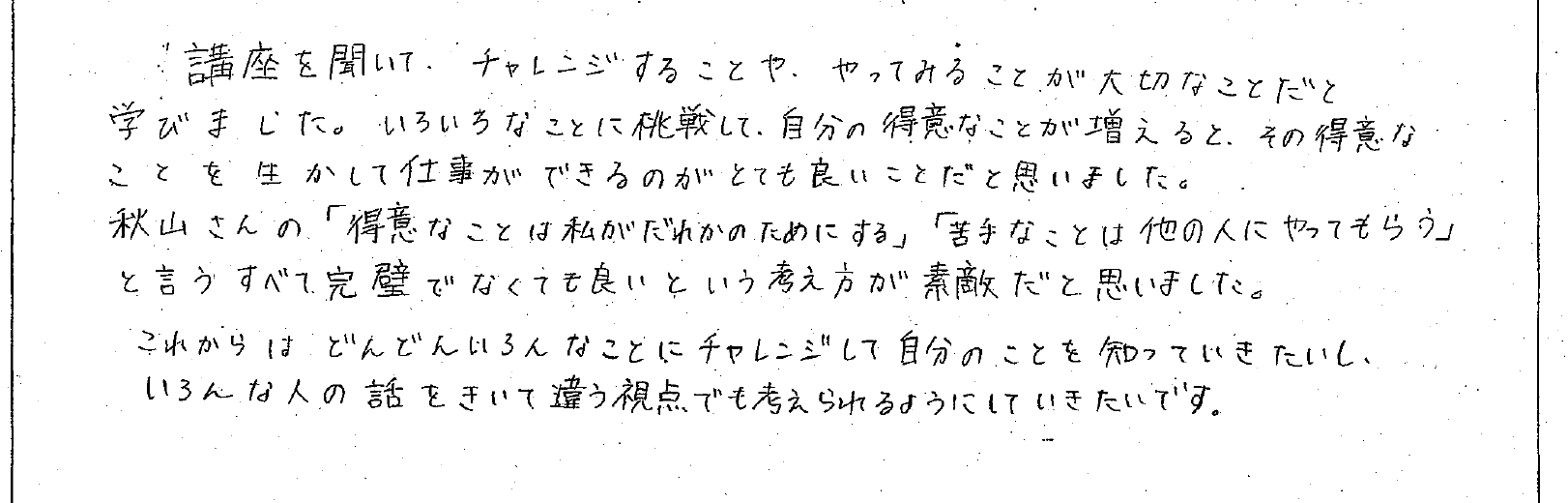 ミュージシャン 秋山璃帆さんの話を聞いた生徒の感想