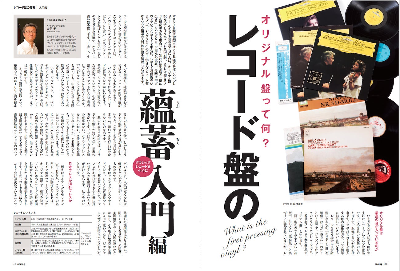 レコードのオリジナル盤、それは一番音がいい? オリジナル盤の見極め方とは? プレス国の話、ステレオ盤とモノラル盤が両方ある場合って? と、知れば知るほど「沼にハマる」レコード選びの世界。今回はクラシックレコードを中心に、レコード通信販売ショップ「ベーレンプラッテ」の金子 学さんに、レコード盤の蘊蓄入門的知識を解説していだきます。