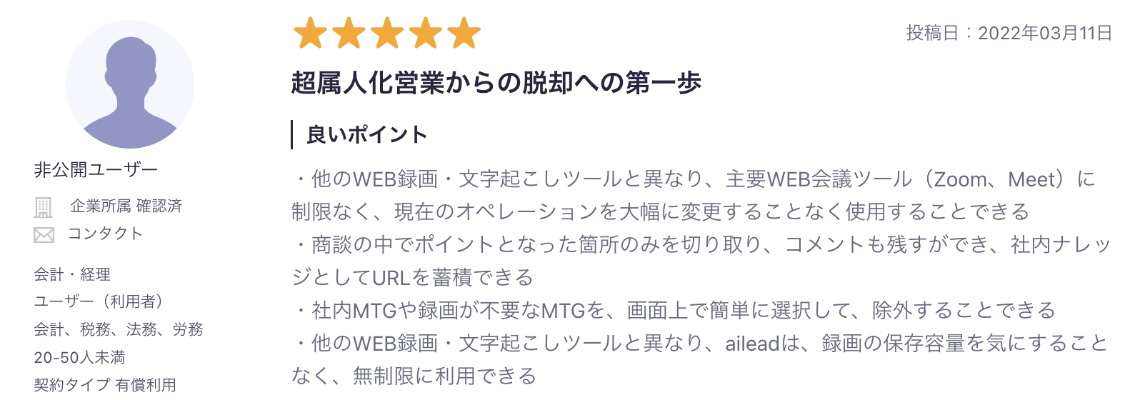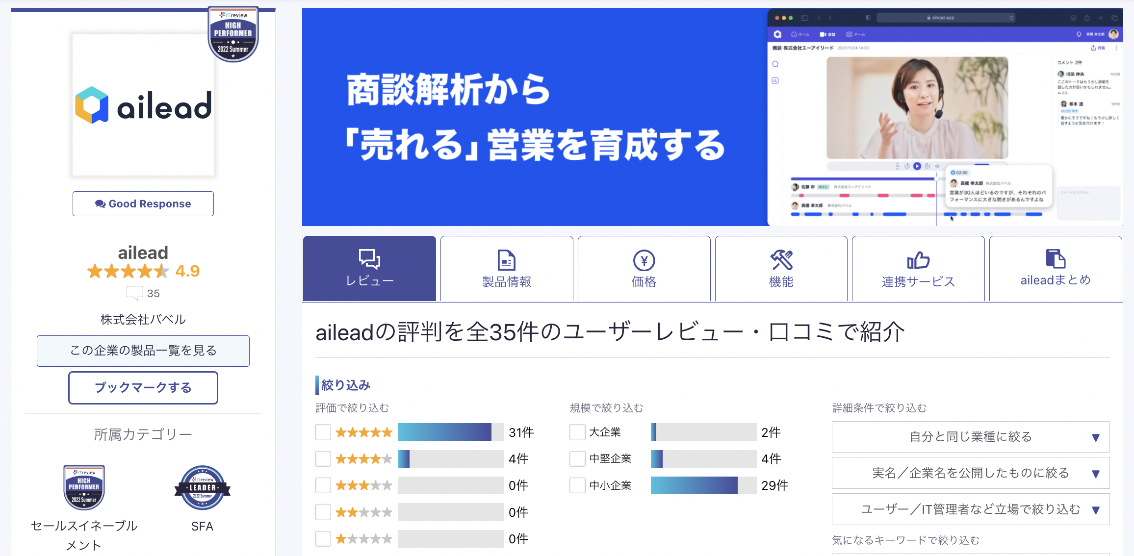 ▼ ailead(エーアイリード)のレビューページはこちらからご覧いただけます。