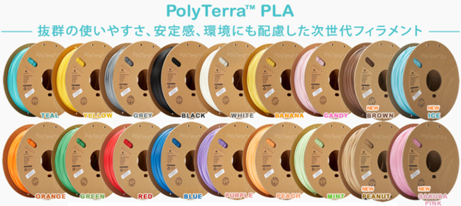 高品質で切削性が高く、造形も簡単な【PolyTerra PLA】は3Dプリンターの入門に最適。
