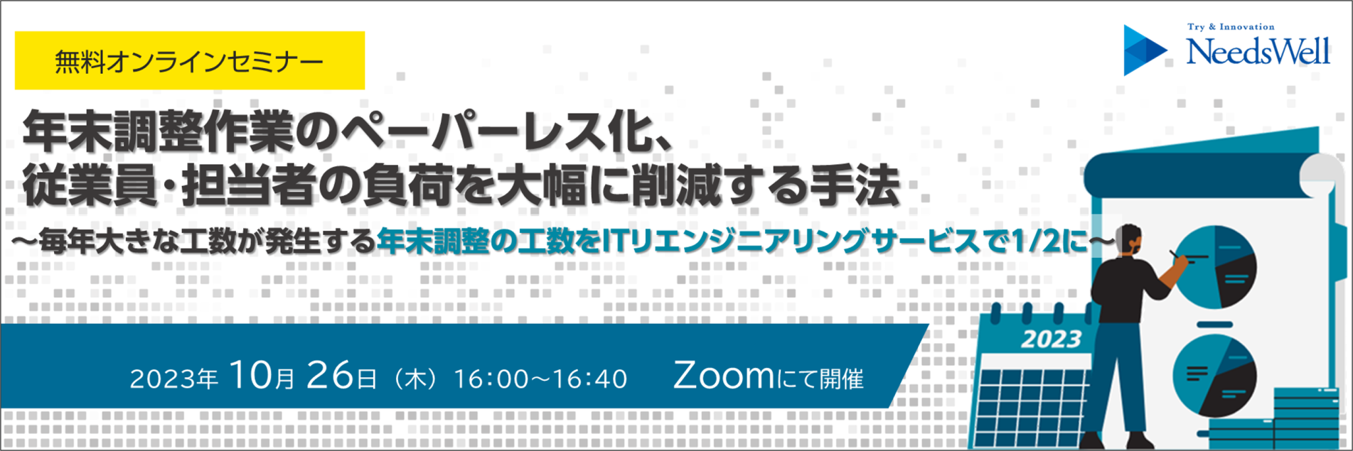 本セミナーでは、当社で行った年末調整作業のペーパーレス化による従業員・担当者の負荷を大幅に削減する手法 を、当社のITリエンジニアリングサービスと共にご紹介します。