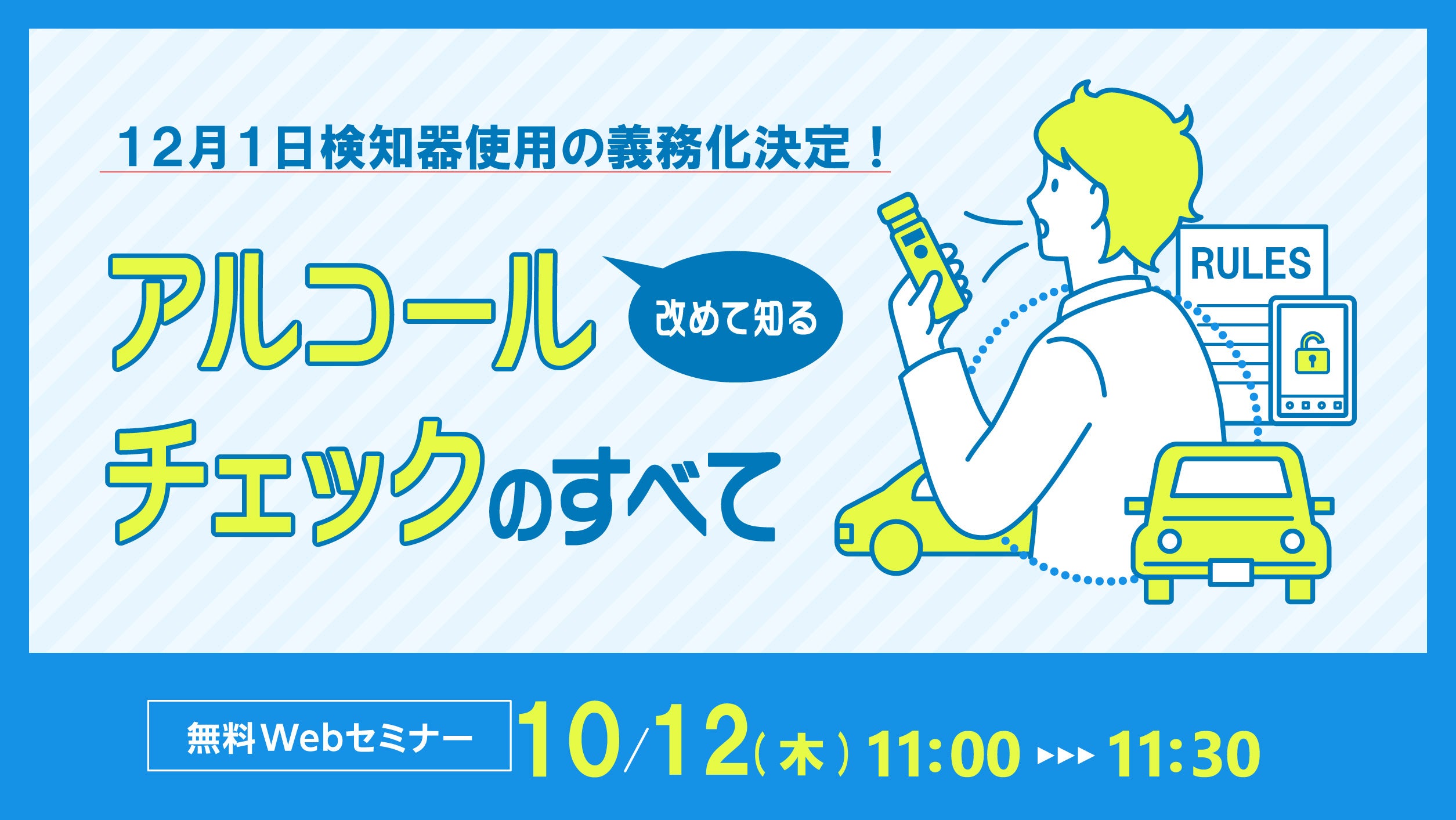 株式会社東海理化は、社用車管理の課題を解決する DX サービス「Bqey(ビーキー)」を展開しています。8月上旬には警察庁から、「12月からアルコール検知器による飲酒検査の義務化」の決定が正式に発表されました。本ウェビナーでは、企業や団体の総務部門の方や車両管理の担当者にお伝えしたいアルコールチェック義務化の内容やアルコール検知器についてご紹介します。12月からのアルコールチェック義務化は目の前です。「Bqey」に法令対応のお手伝いをさせていただけませんか?皆様のご参加を心よりお待ちしております!