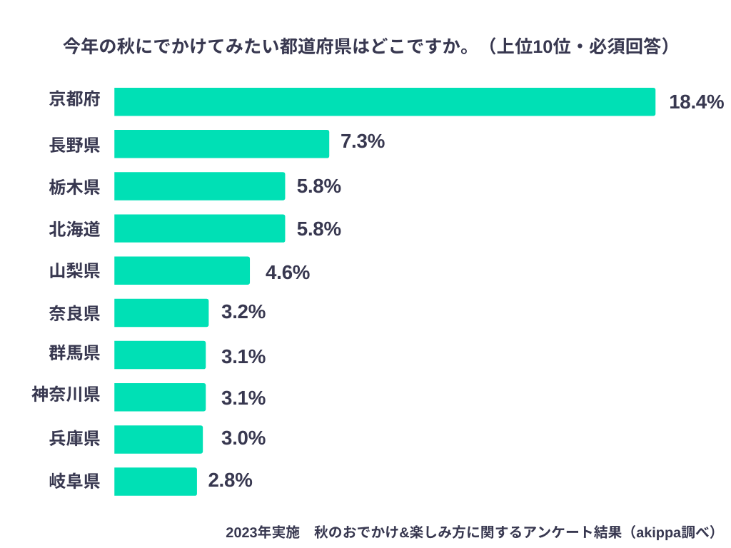 ・今年の秋行きたい都道府県「京都府(18.4%)」が第一位、第三位には「北海道(5.8%)」もランクイン