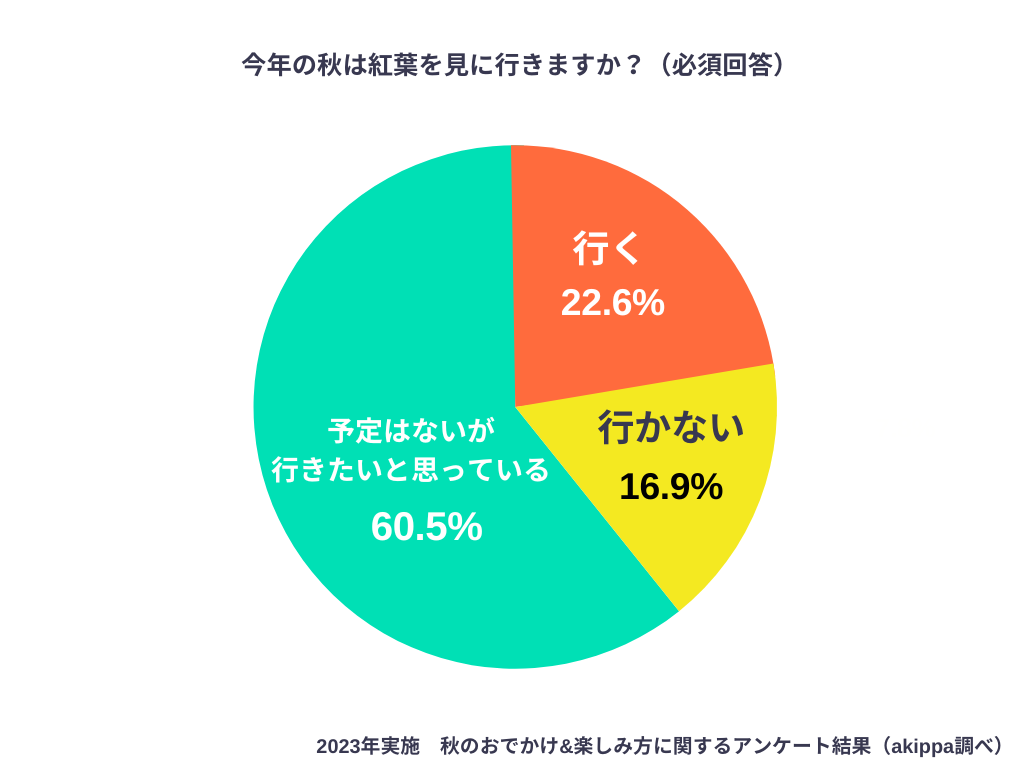 今年の秋に紅葉を見に行くかどうかを聞いたところ「行く(22.6%)」および「予定はないが行きたいと思っている(60.5%)」と回答した方が8割以上という結果になりました。