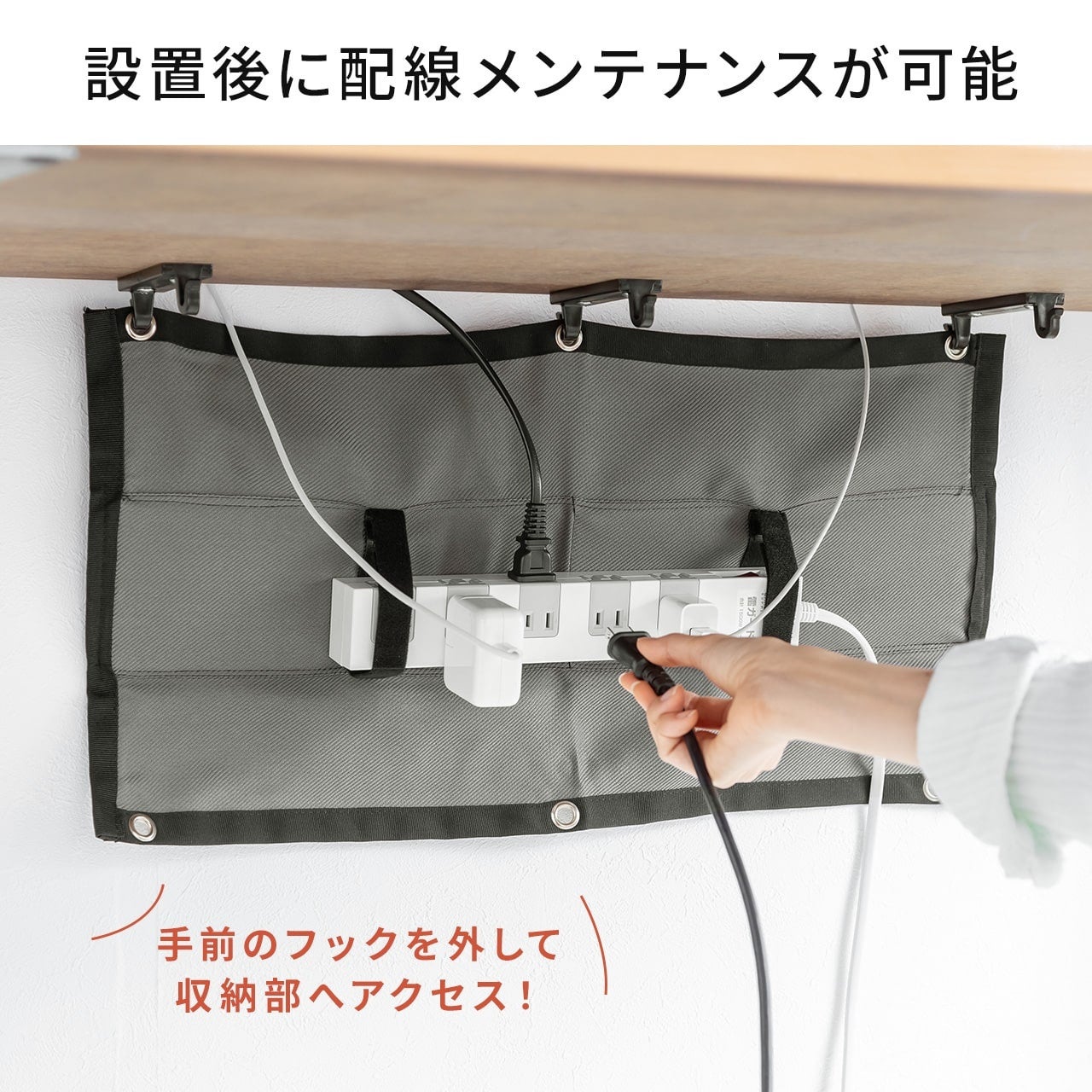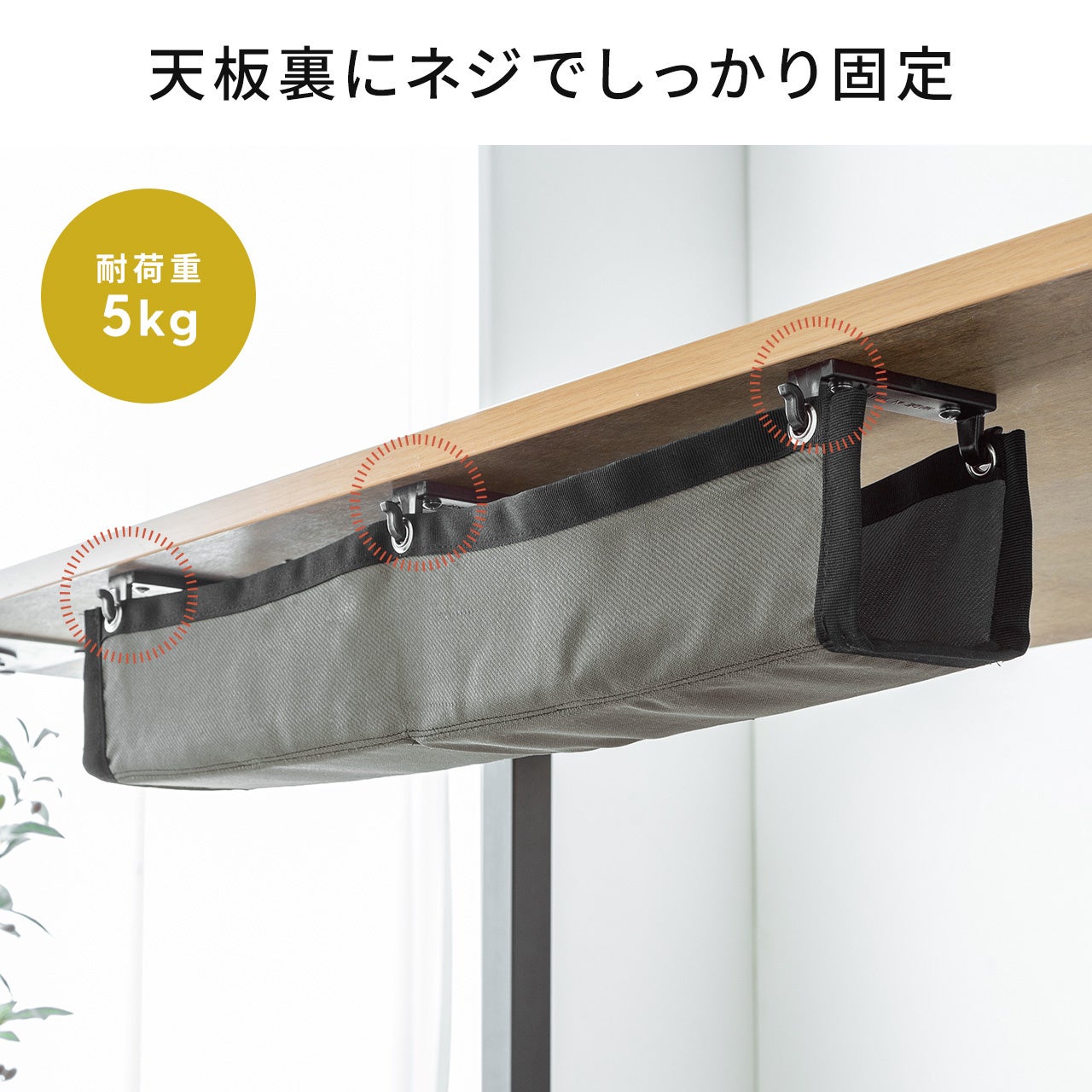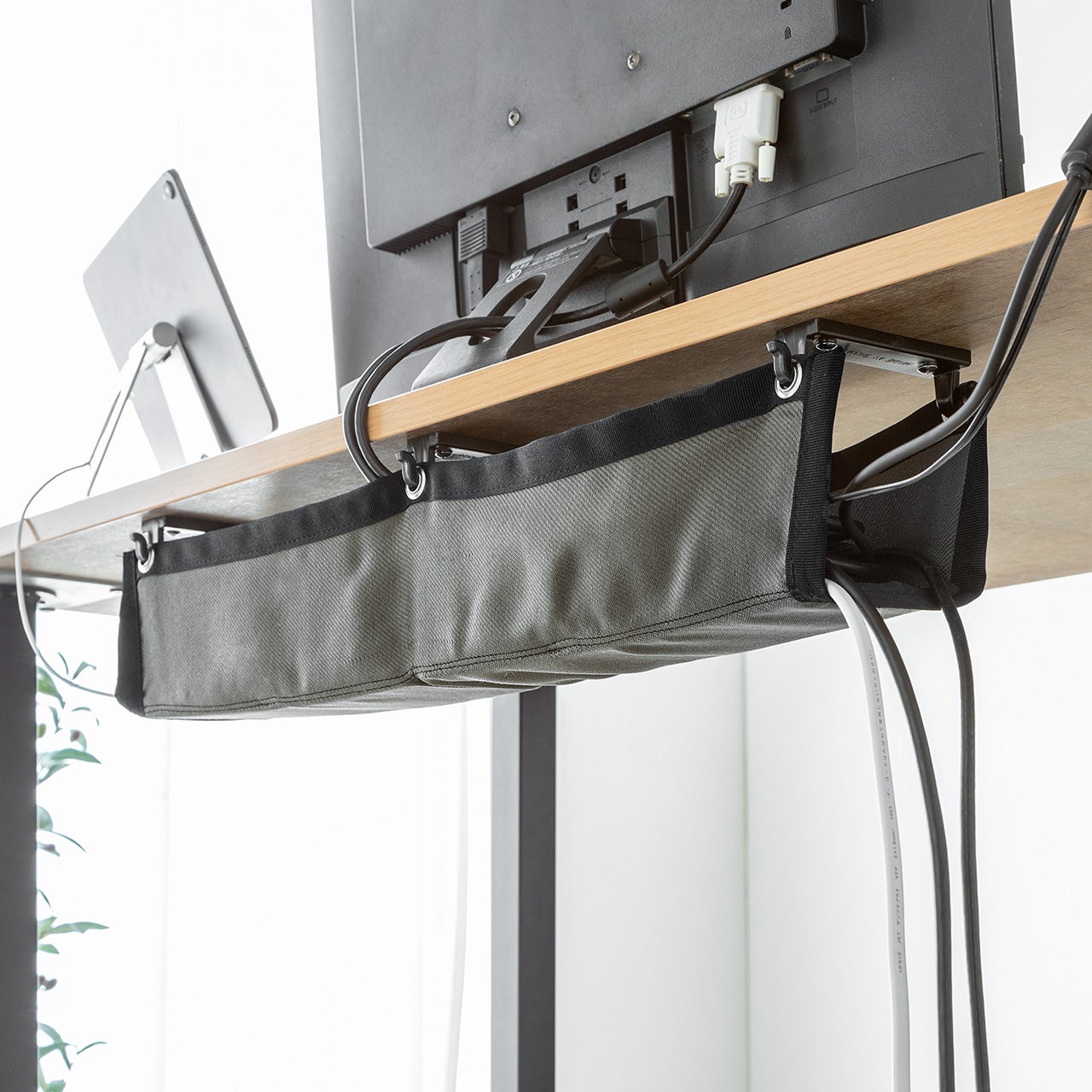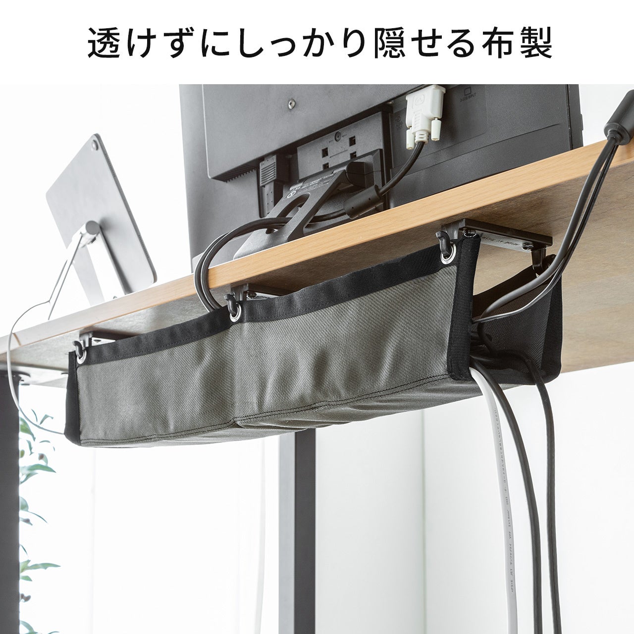 電源タップ、ケーブルを収納でき、デスクに後付ができるケーブルトレー。ネジ固定で取り付け部品が飛び出さない。布製でしっかり目隠しができる。汎用タイプ。【WEB限定商品】【ケーブルトレー】のサンワ ダイレクトの通信販売!大人気のケーブルトレーに布製