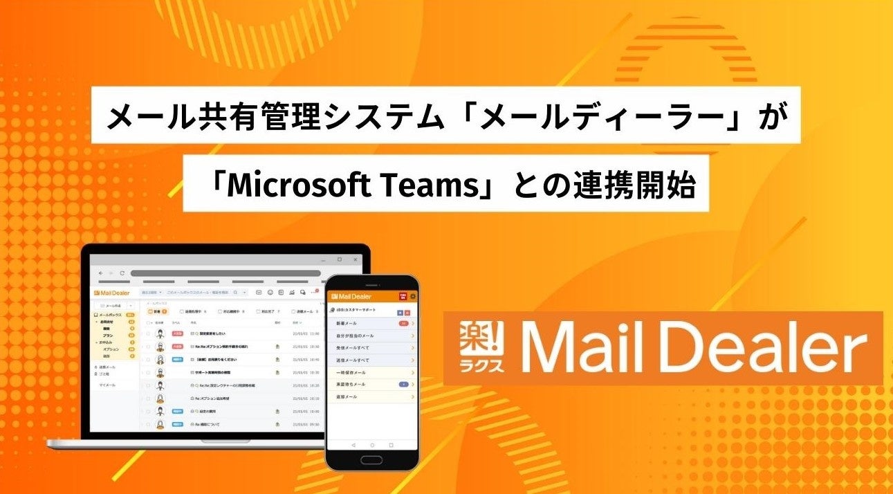ラクスが開発・販売する「メールディーラー」は、info@やsupport@などの共有メールアドレスやメーリングリストアドレスでのメール対応の管理をラクにするクラウド型のメール共有・管理システムです。