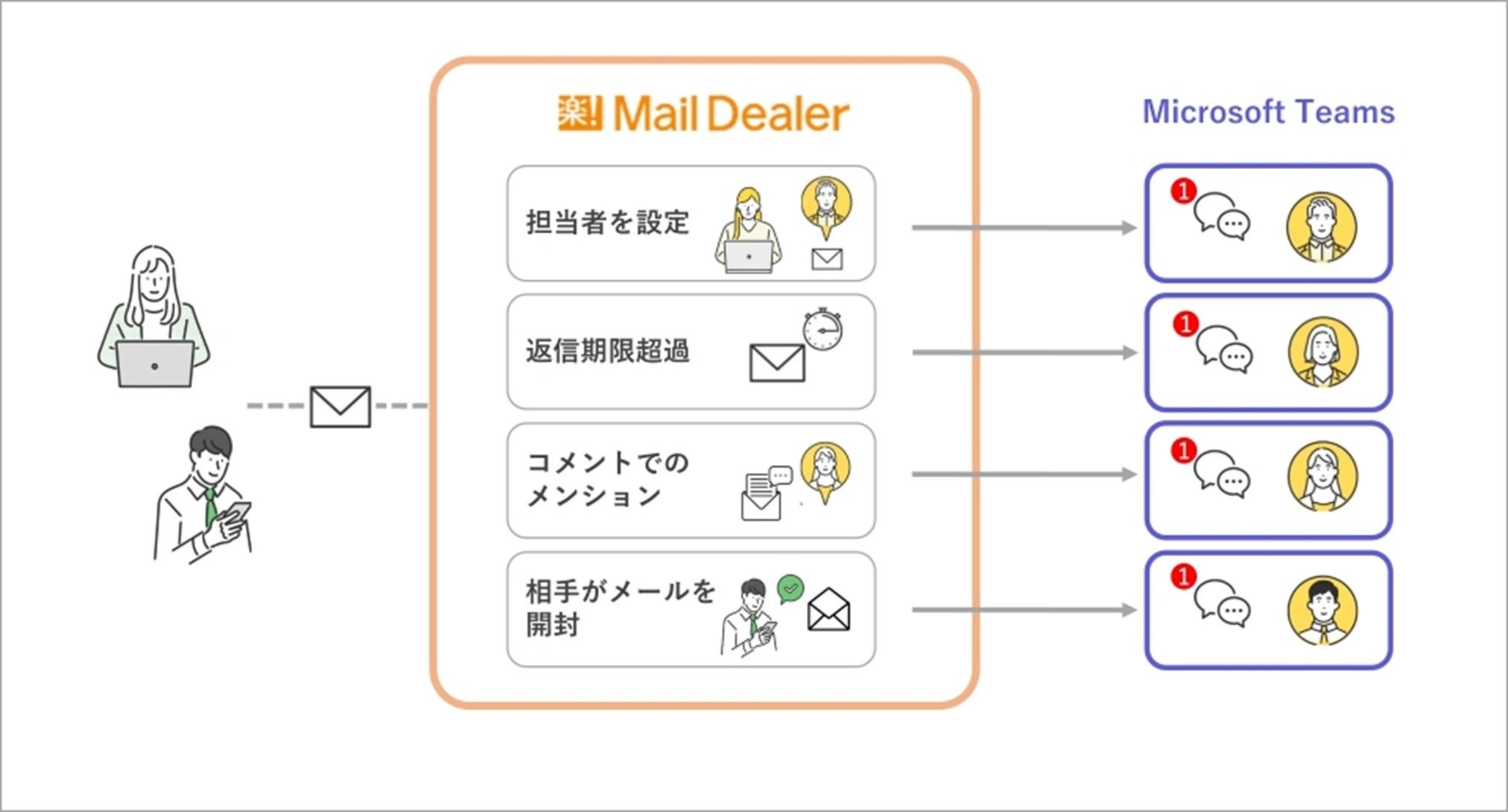 今回の連携により「メールディーラー」から「Microsoft Teams」へ通知ができるようになりました。