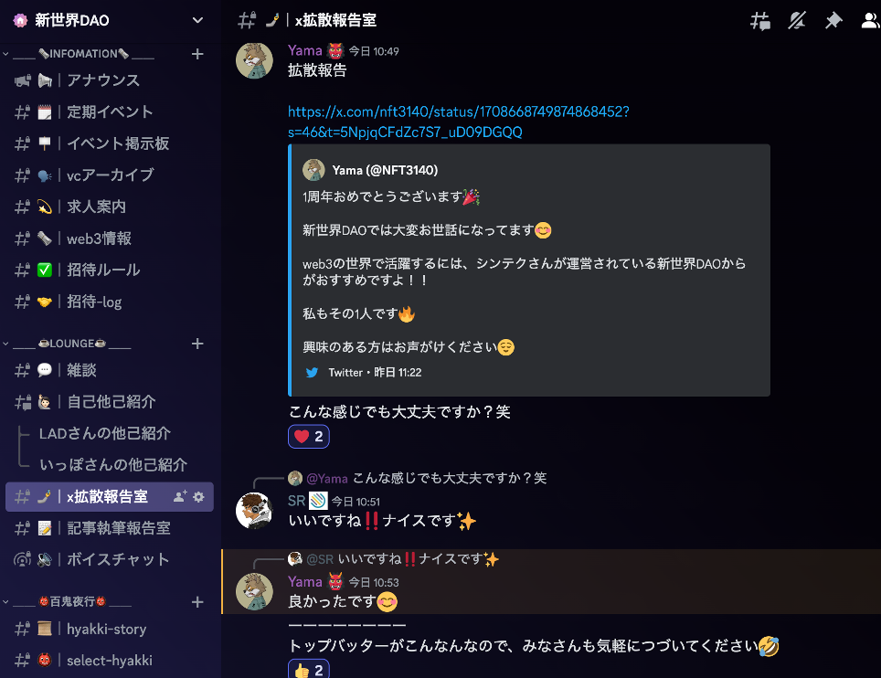 新世界DAO Xアカウント:https://twitter.com/shinsekai_dao