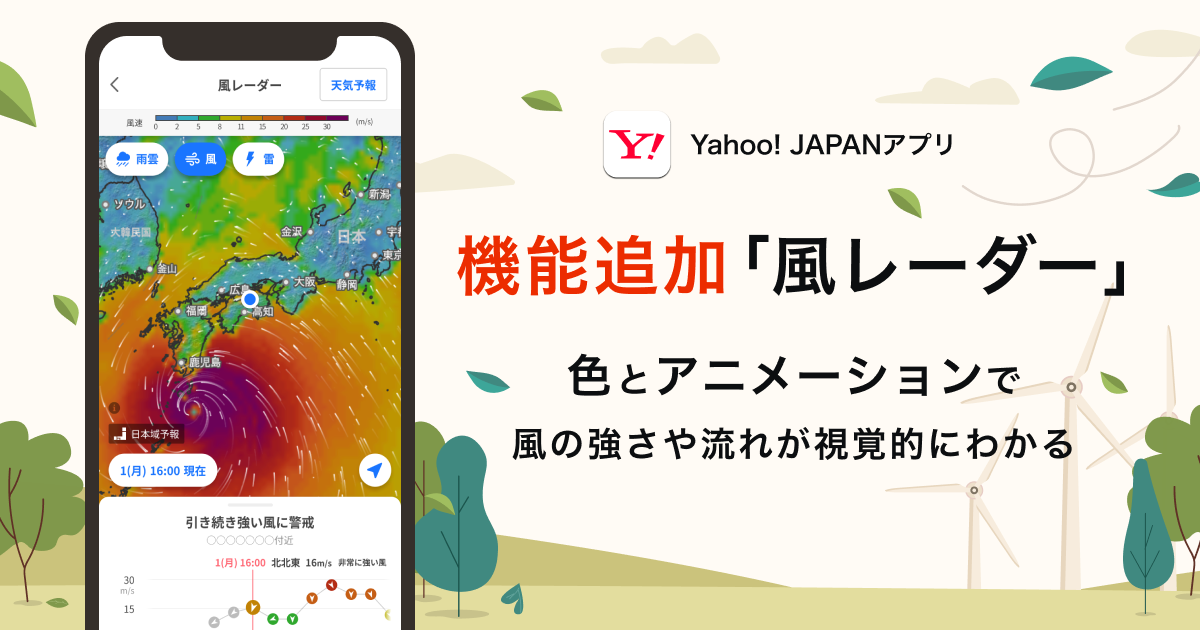 ※2:Yahoo! JAPANアプリ、風の動きと強さが視覚的にわかる「風レーダー」機能を雨雲レーダーに追加(2023年8月31日 プレスリリース)