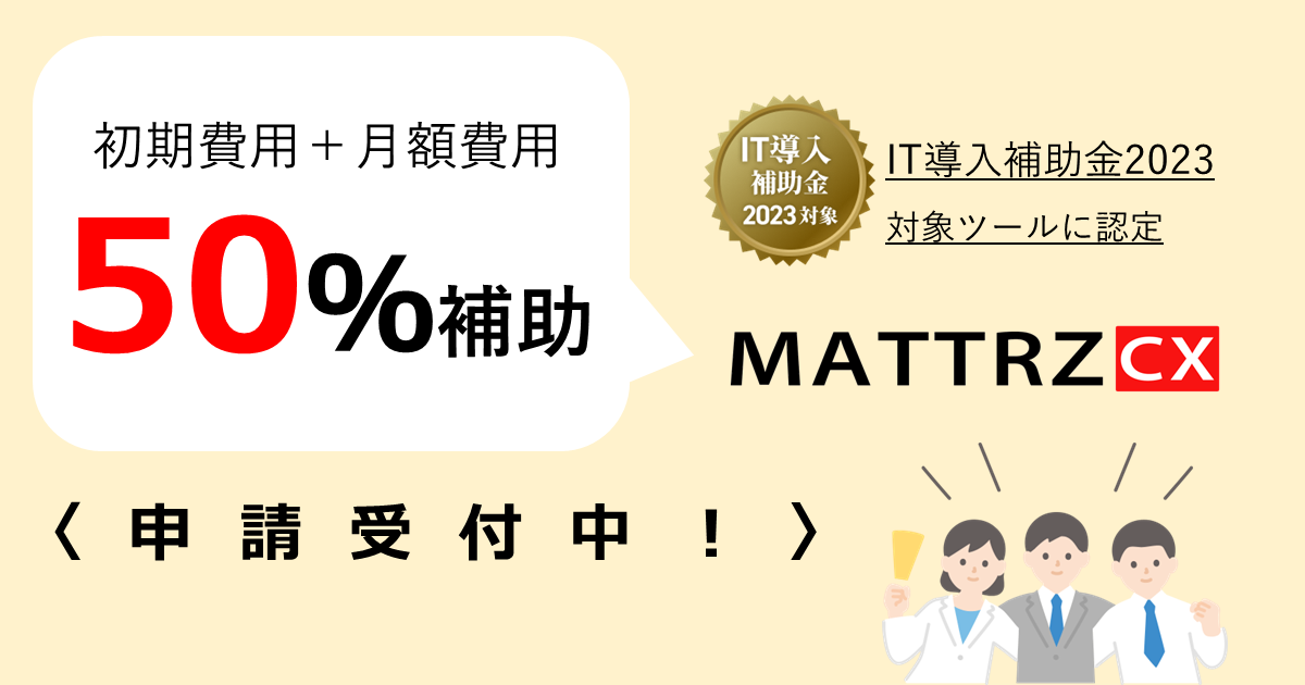 今回の採択により「MATTRZ CX」を導入される中小企業・小規模事業者等の皆さまは、初期導入費用+月額基本料金の50%の補助金の交付を受けて頂くことができるようになります(※)。