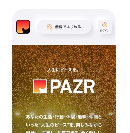 「PAZR」は、あなたの生活・行動・体験・趣味・仲間といった“人生のピース”を楽しみながら記録し、収集し、共有できる、全く新しいライフログSNS。あなたを構成する要素をピース化して記録するジャーナル機能をはじめ、お店のメンバーズカードやクーポンとして、イベントの参加記念としてなど、ピースの活用シーンはどんどん広がっていきます。ひとつひとつのピースが積み重なることで、あなたが生きた証として刻まれます。