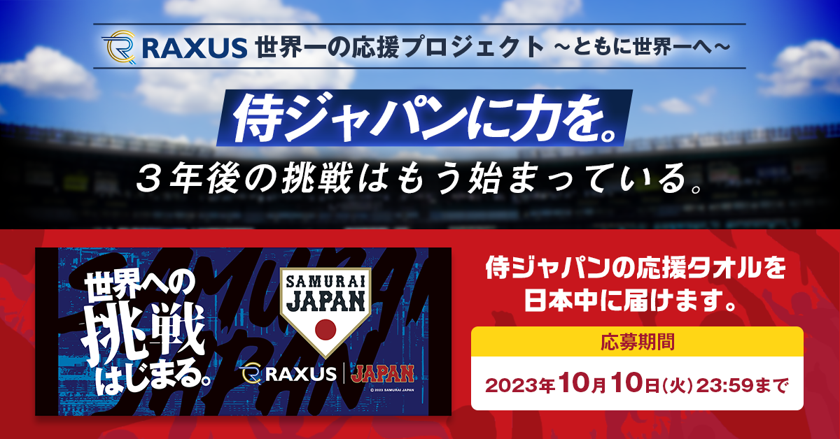 侍ジャパンオフィシャルタイトルパートナーのラグザス株式会社は、日本中の皆さんと野球日本代表「侍ジャパン」を応援するために、『RAXUS世界一の応援プロジェクト』を立ち上げました。